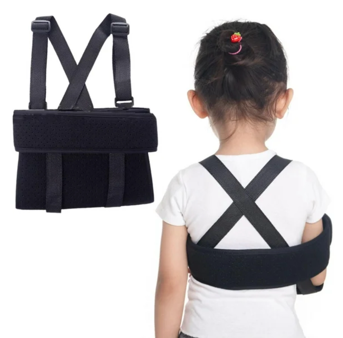 Soporte anatómico diseñado especialmente para niños. Ayuda a inmovilizar el brazo y el hombro tras lesiones o cirugías, brindando seguridad y comodidad.